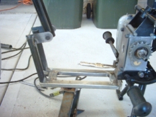 Next step was to get to work on the front cradle assembly, deciding to do away with chopping the frame to allow enough room for the starter motor. Any modifications would mean the integrity of the frame would come under scrutiny from the NSW roads and traffic authority. I was later to find out kick starting the bike is easy enough, also finding the alternator stator is not strong enough to charge a large capacity battery. This also allows me to use the standard battery saving on weight which is a good move, as its less weight the bike has to pull along.