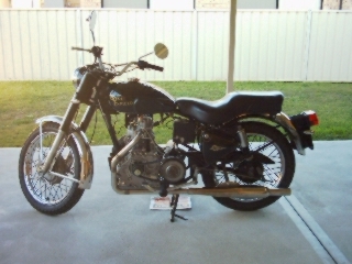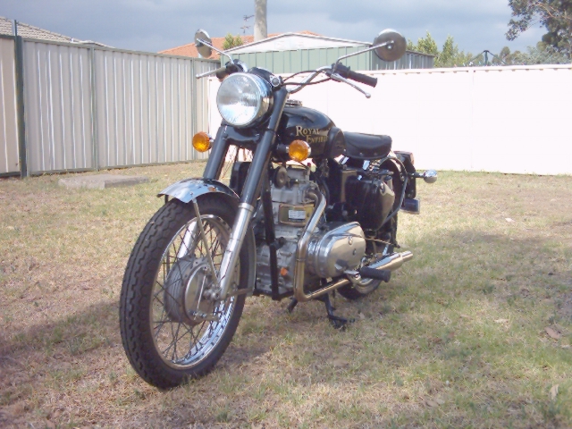 Here is the donor bike, it took some searching, but I finally found an Enfield of the right vintage to make it through all the New South Wales RTA (Roads and traffic authority), requirements here in Australia. The bike is a 1995 500 Bullet, just the bike I needed.