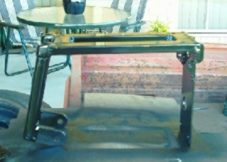 Happy with the way all the bit's and pieces bolted up, it was then time for a complete pull down and respray, shin n polish to bring the bike back to a presentable condition for the next step - the dreaded engineers certificate, then road worthiness certificate and finally registration. I've placed some photo's above of the cradle before final mounting into the bike to show the completed unit.