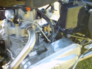 Other parts used were a Taurus inner chain case, Taurus extended main shaft, Adaptor plate for the space between the engine and inner chain case, 25 tooth duplex front primary chain sprocket specially ordered from Renold chains, solo seat (after market), re-wired electrical system using most of the standard Enfield harness, also using the Boyer regulator that came with the bike. A lot more little parts went in here n there, but the listed ones are the major parts used.