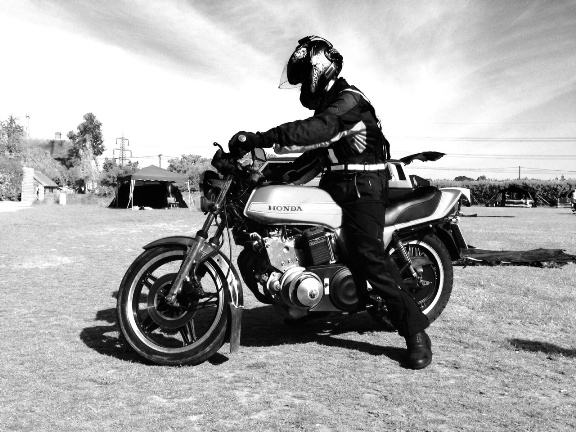 Alex about to ride out on one of Tim's creations.