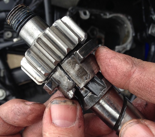 Ian fixing his gearbox and a shot of the broken cog.