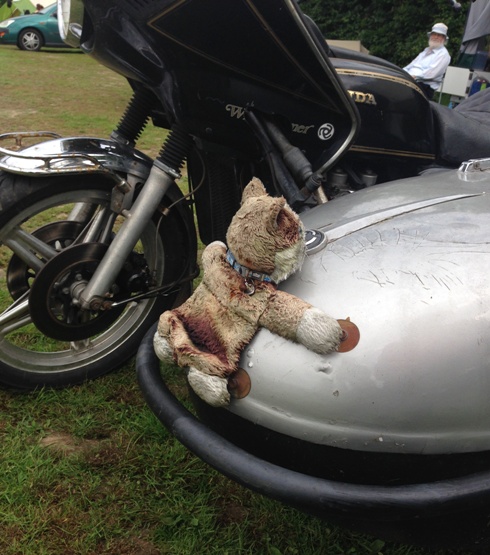 On the days leading up to this, our tenth anniversary rally, the weather had been giving me cause for concern. Persistent rain had made the entrances to the various fields at the Bat and Ball rather muddy and, it being camping season, there was no end of camper vans using the various ways in. The gateway into the first field (we were in the second this year) rapidly became something of a quagmire and we were slightly horrified when camper vans started being directed through our field to their destination. We witnessed and helped out several drivers who, in our view, didn't know how to drive their vehicles. Eventually a few lorry loads of shredded wood chippings were delivered and we all piled in to spread this over the mud to soak up the water and make the way a bit easier for the arrival of the motorcycles. The rally was about to begin!