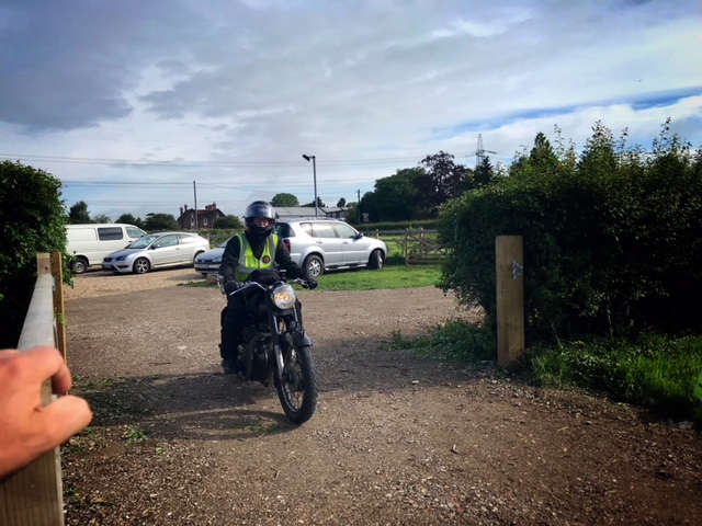 No tax and no MoT required, Sir! Kevin Briefs Matt on his bike.