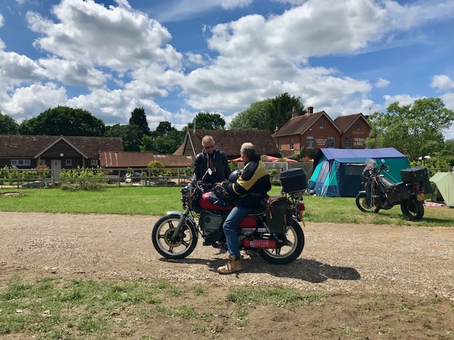 Incidentally Uncle Olle rode over with Edwin & friends andthe first thing Edwin did on arriving was to pay back my bro Jeff with a spare inner tube. This after we’d furnished him with one after last years incident when he’d arrived on site being towed by an AA van after getting a puncture.