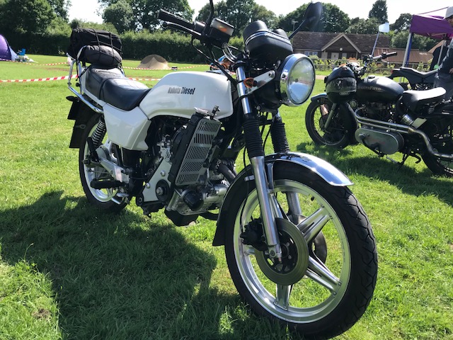 I’m indebted to Tig who brought along the incredible ‘Frankenstein’ bike. Ok, so it’s not diesel powered but it does fall firmly into the category of ‘alternative’ and given the way legislators are going we are now welcoming anything different along.