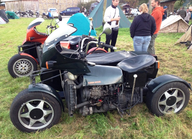 Saturday night saw me talking with Abel, a French biker who has attended several diesel meetings both in the UK and in Germany. After telling me he intends to go to the Welsh Dragon rally later in the year he complains about French law and how it is hard to build and register custom made machines there. He may end up bringing it to the UK to get it on the road.