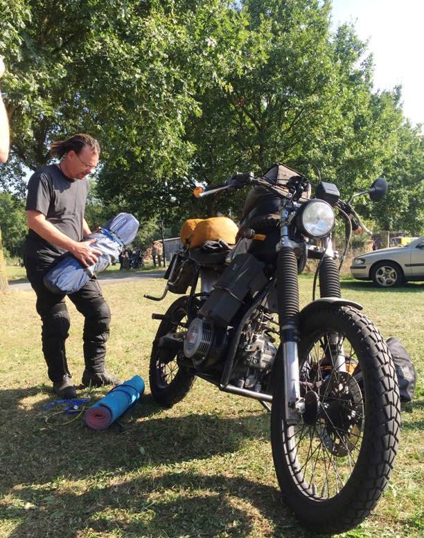 Unfortunately we had some visitors to the rally who left without paying their bill Saturday and so landlord Willy decided to implement a ticketing system whereas Euros were exchanged for tokens prior to entering the courtyard. This caused some consternation amongst the boys, some being midway into a session, and it inevitably led to crossed words. The result was that a certain amount of boozing was done in the field out front from then on and well into Saturday night. I heard the aftermath in the early hours when there was something of a kerfuffle close to our tents with the name, 'Ozzy Osbourne' being shouted out repeatedly! Lol.