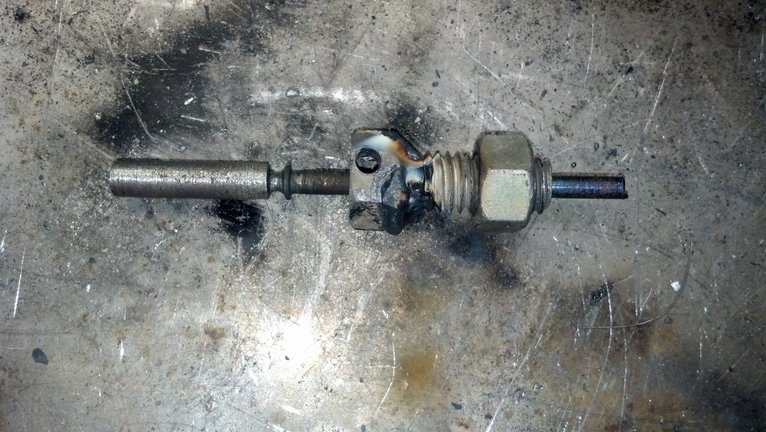 Modifications to the throttle plate: The throttle assembly was removed and the large spring located on the pivot of the main throttle arm was removed.  A spacer was cut down from a washer and used to keep the play in the main arm linkage to a minimum.  The throttle cable mount was removed and the throttle cable I am using (1999 YZ-400F) was screwed into the original location.  A hole was drilled towards the bottom of the throttle mounting plate and a tension only throttle return spring was mounted through the hole and extended to the attachment location of the throttle cable.  A piece of steel sheet metal as welded to the top of the throttle stop location.  The piece had a hole drilled in it and a 3/8”x16tpi stand-off bung was welded in-line with where the throttle stop comes up.  A 3/8x1.5”x16tpi bolt had a hole drilled through the middle and the head cut off.  A nut was then drilled at the top and to the side to allow for a pin to be inserted.  A steel rod was cut down and a notch cut in it.  The bolt us used to move adjust the idle stop.  When the retainer pin is removed and the plastic knob lifted the engine will die. Pressing down on the pin and inserting the retainer pin sets the idle back to where it was.  Red Loctite was used on both mounting bolts for the throttle mount plate and the plastic knob bolt inserted into the linkage to keep vibrations from loosening them.