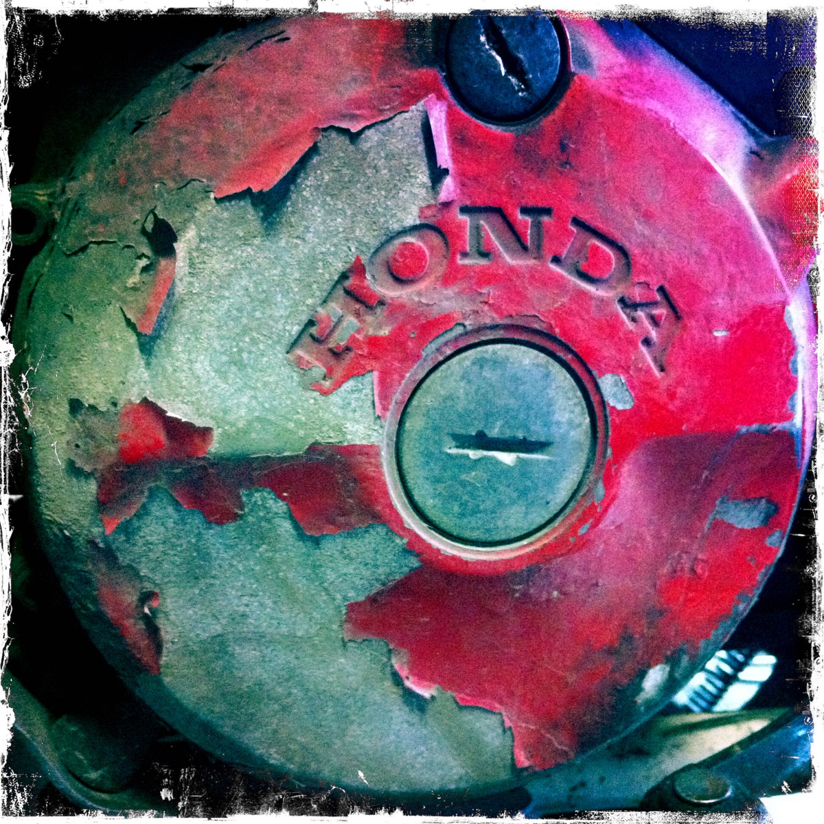 Again I've used the Hipstamatic App, this time with an IPhone 4. I had to re-paint this cover but it had such a savage beauty about it I couldn't resist snapping it for posterity. This motorcycle had recently returned from a trip out the Germany and life on the open road is hard on old bikes. Rule 3: Shoot first & think later - capture the moment.