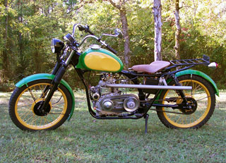 In the Summer of 2006, Dean bought this 1985 Honda Rebel and converted it to a 10 Horsepower Single Cylinder Yamar Diesel powered motorcycle. He also put an automatic belt driven transmission on it. He gets 140+ MPG and uses Bio Desiel.