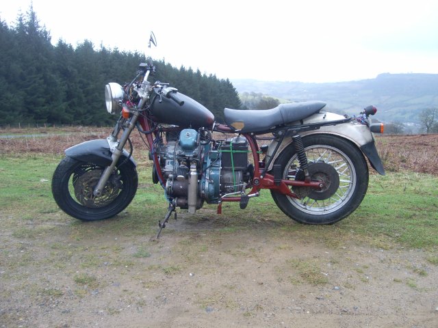 Haydn's 1.6 litre Ford fiesta engined Rat bike. More here.