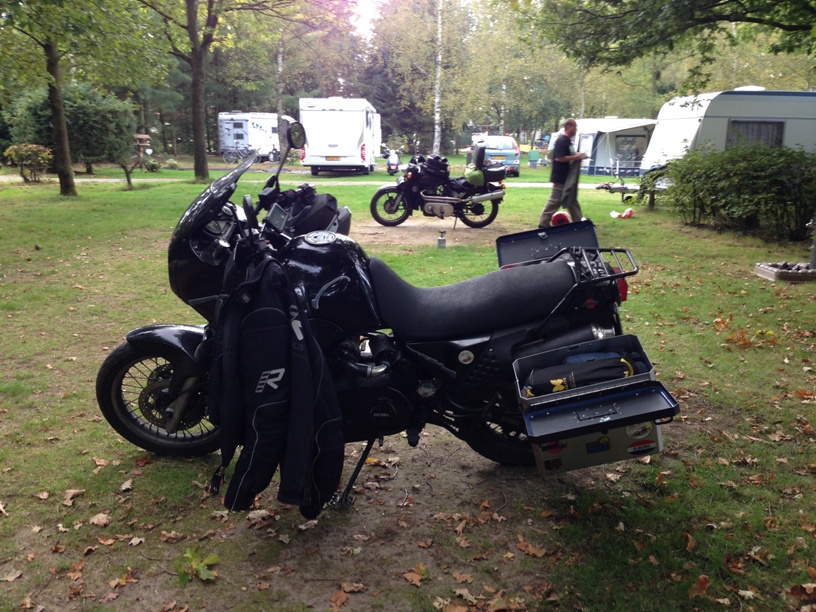 After attending the Hamm diesel Treffen we rode away and jumped on the E2 autobahn West, putting in some miles to Duisburg. The we rode the E34 past Venlo to Einhoven and ended up Camping at Valkenswaard. The region was pretty built up and we found the journey constantly interrupted by traffic lights.