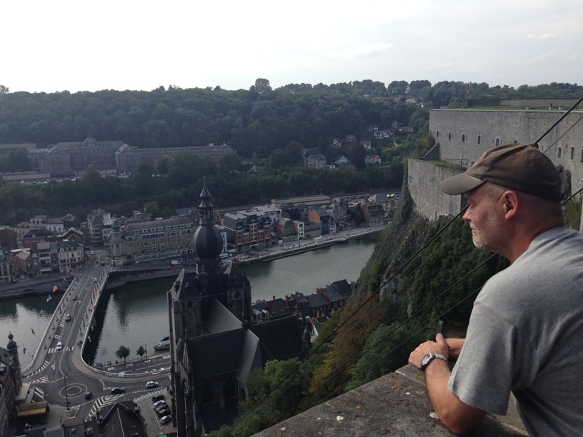 When we rode out from Dinant we rode under the bridge in the distance, on the far side of the river.