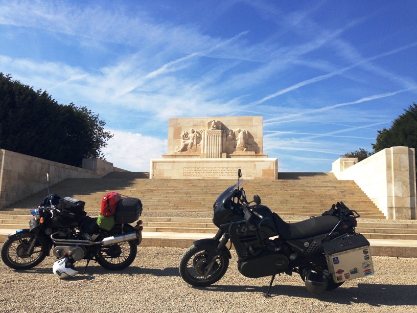 Gorgeous weather as we picked our way mainly along minor roads towards Péronne. As we flashed our way through village after village, we negotiated the dreaded diversions, swinging the bikes this way and that to avoid the uneven road surfaces in places.