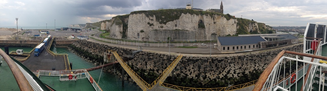 After this encounter (which left us none the wiser) we made our way down more twisty and shadowy roads through the trees to Rieux. Closing in on Dieppe we took the D16 which ran along the Valley Du Roy and stopped several times to admire the gorgeous scenery. Next we hit the main coast road to Le Tréport and stopped for a cuppa at a layby before pushing on to Dieppe and the boat home..
