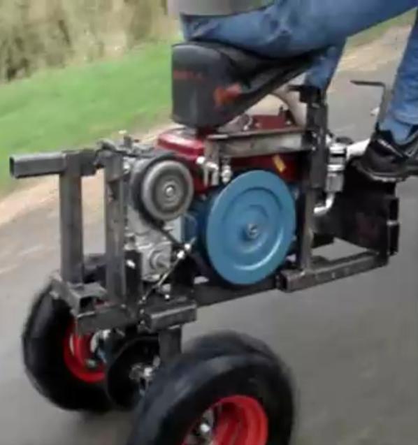 Seen on Youtube, this is advertised as a Cargo bike to transport stuff about the yard. It's in Corunna,Michigan if you fancy a ride. Built be Will Foster.